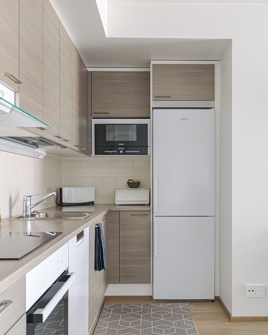 Jääkaappipakastin, liesi, uuni, astianpesukone, mikroaaltouuni ja liesituuletin