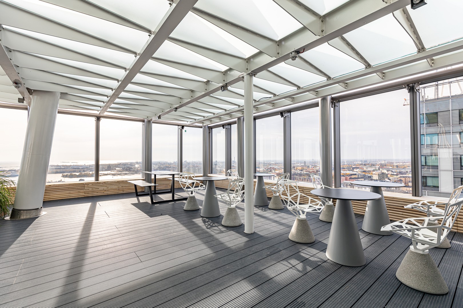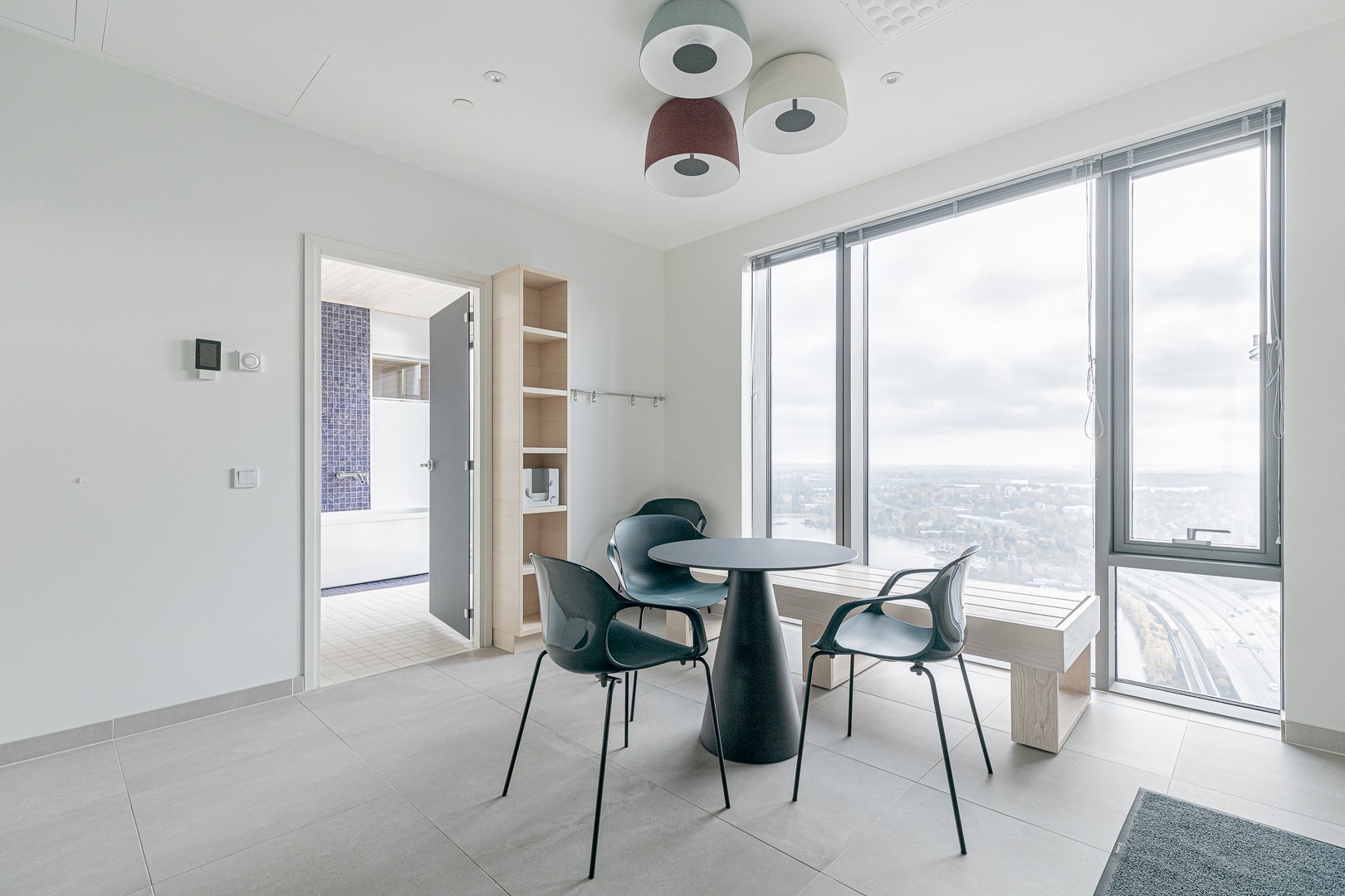 SRV:n kunnianhimoinen projekti valmistui vuonna 2021. Asukkaiden viihtyvyyteen on panostettu ennen näkemättömällä tavalla ja kaupunkiasuminen on viety uudelle tasolle. Asukkaille on tarjolla monipuolisia tiloja ja palveluita. Yhtiöstä löytyy esimerkiksi useita saunoja, joista hulppein sijaitsee 30. kerroksessa ja se on varustettu pore- sekä kylpyammeella. Talon kattokerroksessa on myös kesäkeittiö, aurinkotuoleilla varustettu kattoterassi, klubitila ja kokoustila, joista avautuvat kauniit näkymät kaupungin ylle. Lisäksi taloyhtiössä on kuntosali, pesutupa, kuivaushuone, kerhohuone sekä viihtyisä oleskelupiha. Vieraille on mahdollista varata käyttöönsä vierashuone hotellin sijaan. Lisäksi tarjolla on myös muita palveluita, kuten aula- ja kotisiivouspalvelut.