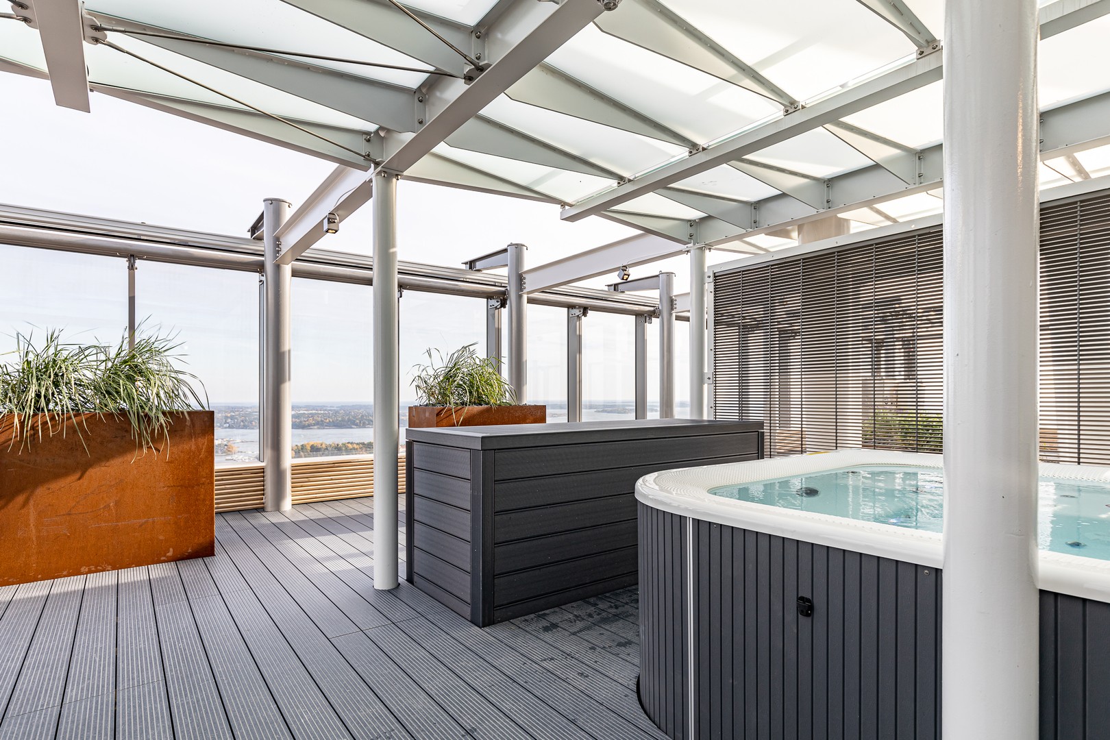 Taloyhtiössä on useampi sauna. 30. kerroksessa sekä 6. kerroksessa. Yhtiön poreamme sijaitsee terassilla. Ison saunan yhteydessä on myös näköala kylpyamme sekä pukuhuone. Yhtiöllä on valtava terassi josta löytyy keittiö, klubitila sekä kokoustila. Kuntosali 6 kerroksessa. 5 kerros: pesutupa, kuivaushuone, kerhohuone, vierashuone sekä oleskelupihan. Taloyhtiössä on osa-aikainen aulapalvelu, joka vastaa asukkaiden asiakaspalvelusta.