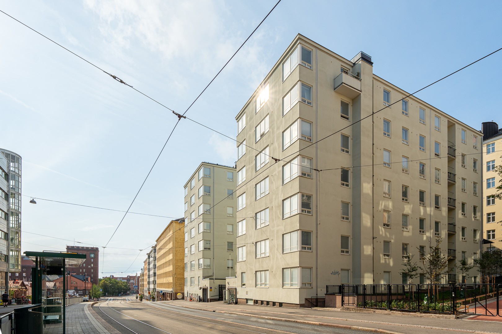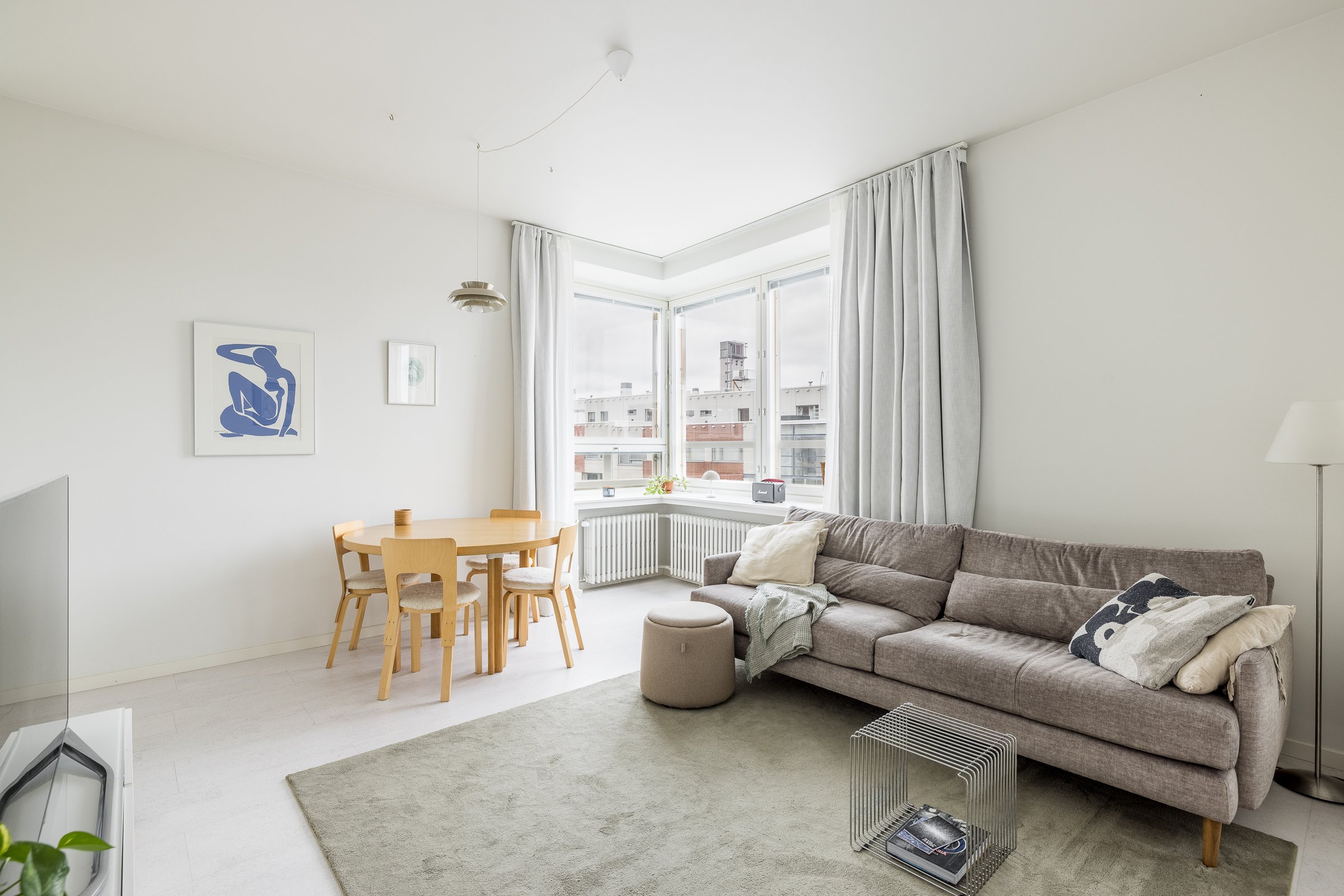 Uniikki ylimmän kerroksen valoisa kulmahuoneisto on rauhaisa ja hiljainen. Huonekorkeus on lähes kolme metriä ja luonnonvaloa jokaiseen huoneeseen tuovat valtavat ikkunapinnat. Asunto on täysin remontoitu LVIS-remontin yhteydessä pintamateriaaleja ja talotekniikkaa myöten.