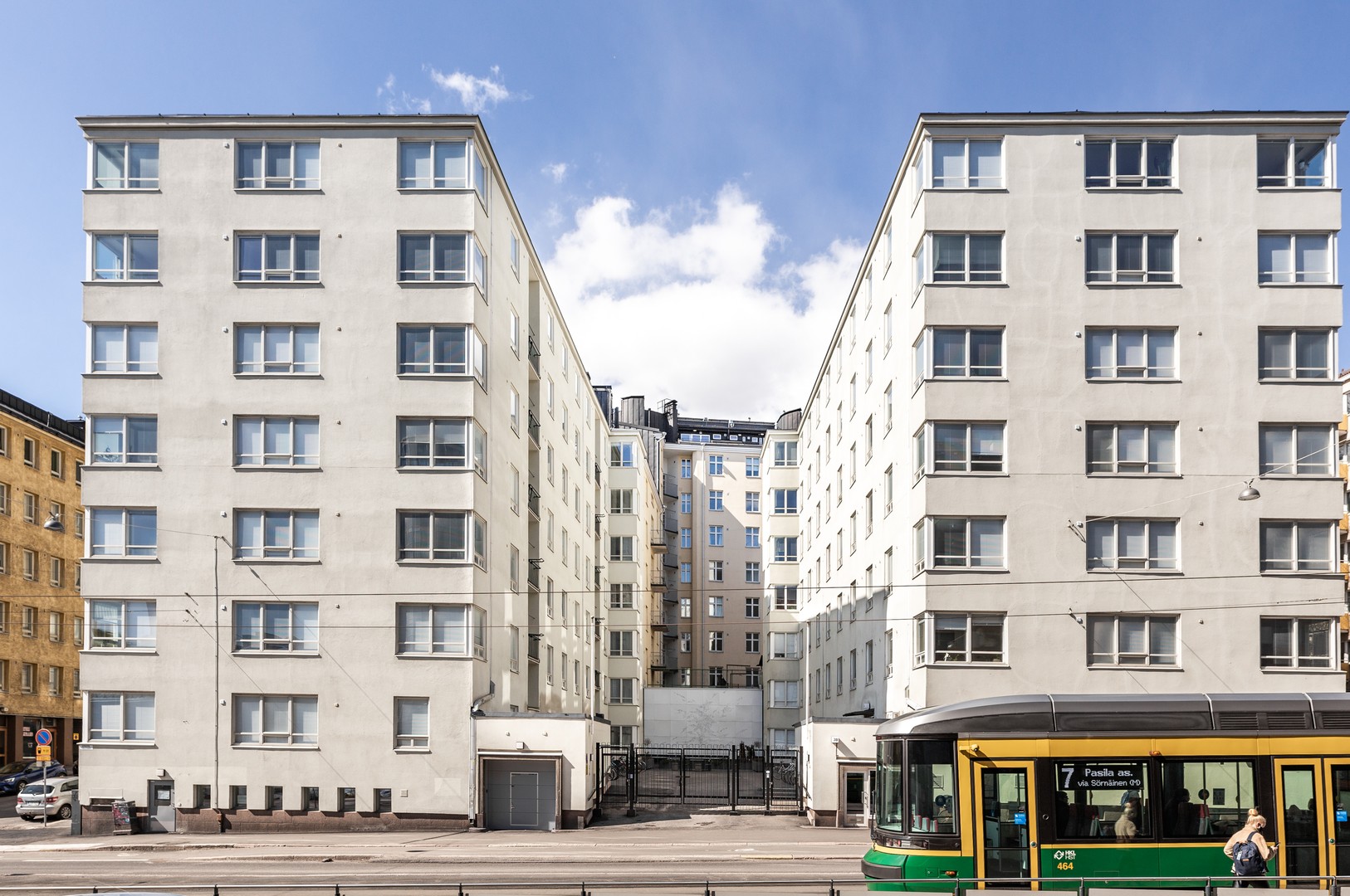 Vastauudistettu Hämeentie muutettiin vuonna 2020 rauhalliseksi joukkoliikennekaduksi. Aivan taloyhtiön edessä sijaitsee raitiolinjojen 6,7 pysäkki ja esimerkiksi Karhupuistoon matkaa vain 500m. Asunto sijaitsee Kallion korkeimman kohdan - puistomaisen ja suositun piknikpaikan - Torkkelinmäen juurella. Alueella on runsaasti kivijalkaliikkeitä, ravintoloita ja julkisia saunoja, jotka luovat Kalliolle sen kuuluisan viban.