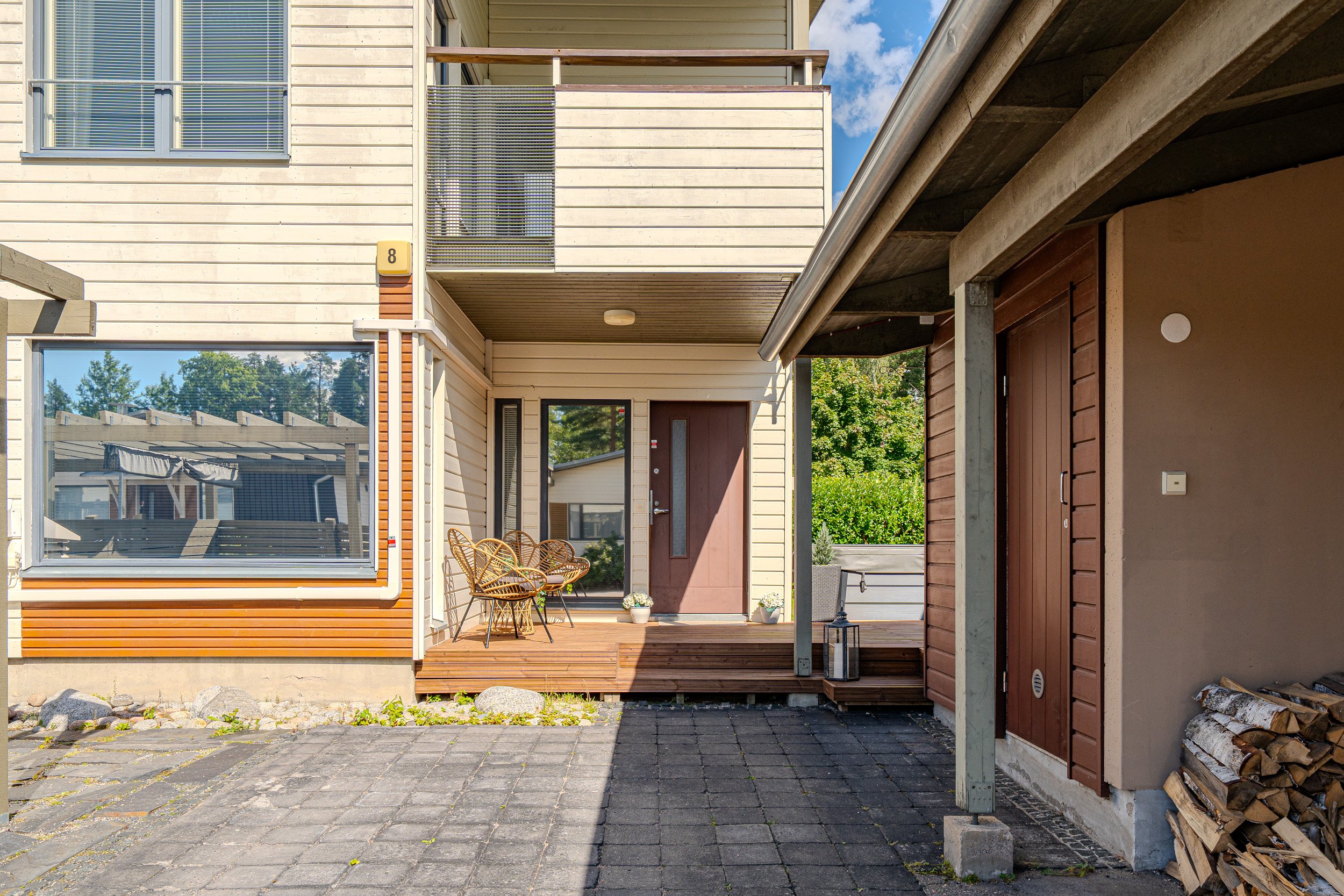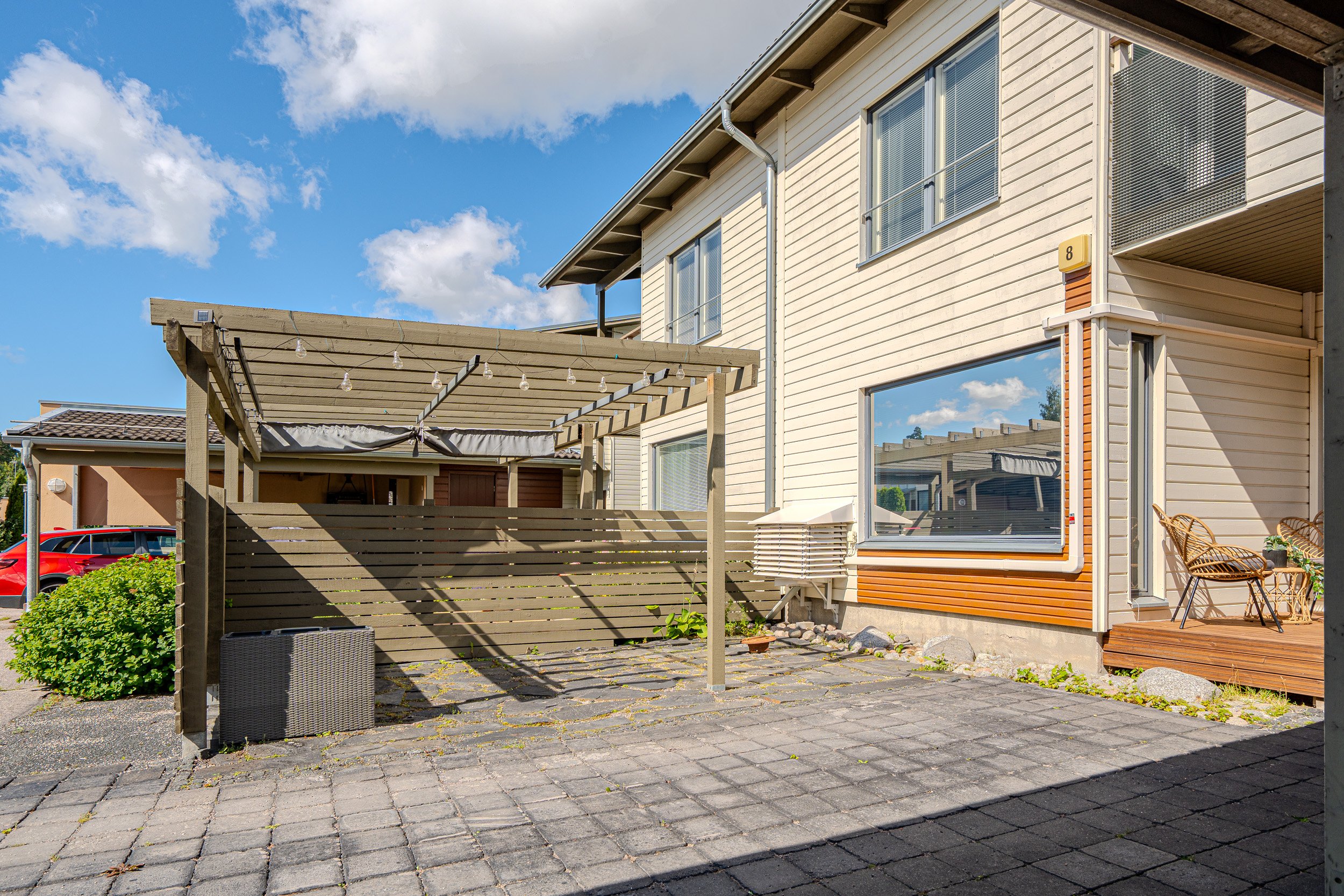 2021 etupiha kaivettu auki, uusittu kivetys, jotta saatiin autopaikka oven eteen. Autopaikkoja asunnossa nyt 3, joista 1 katoksessa.