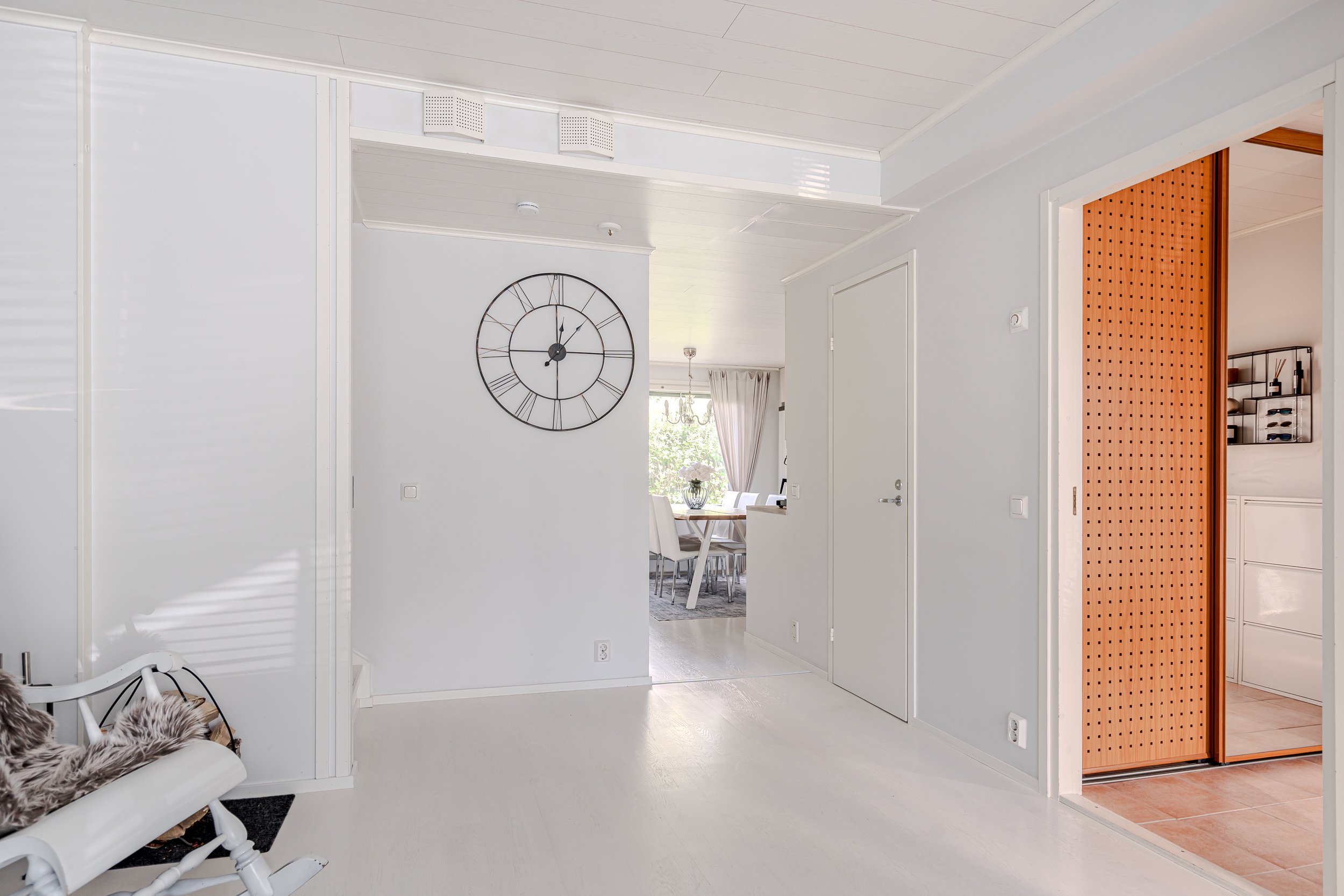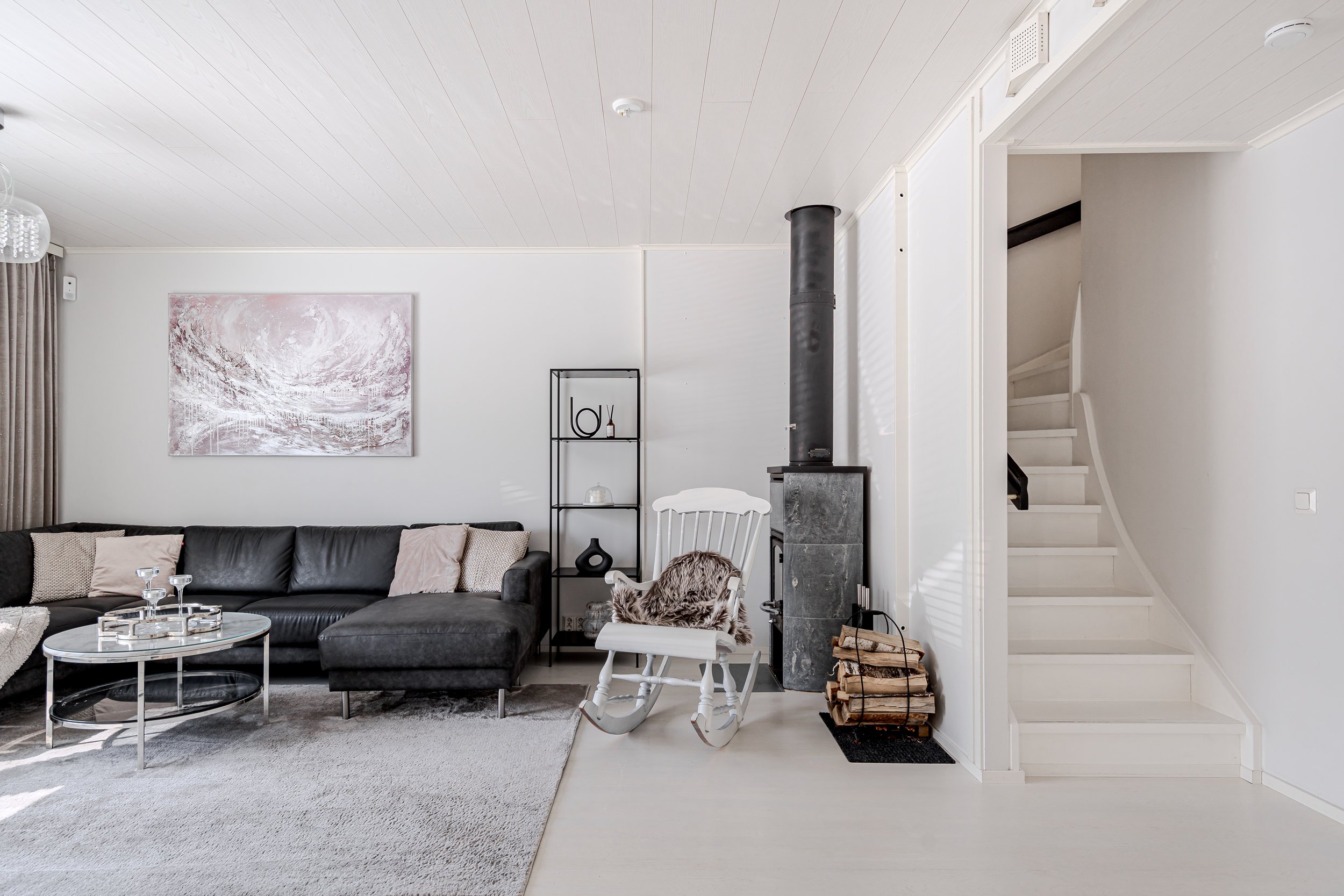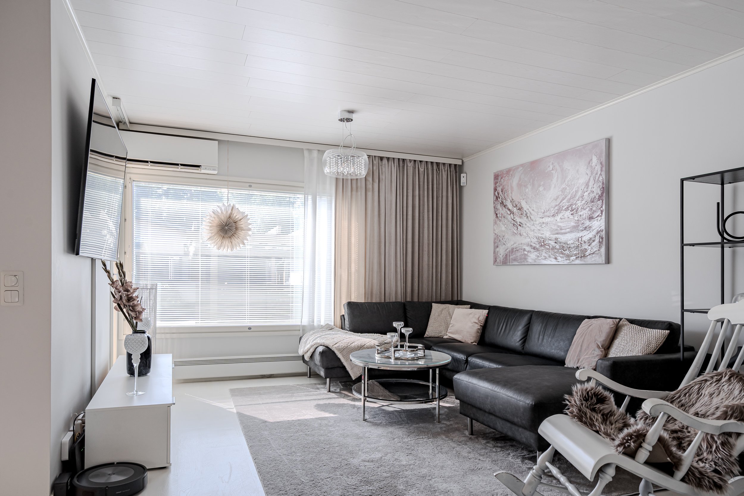 Asunnon eteisestä aukeaa avara olohuone josta löytyy kaunis takka, joka luo tunnelmaa talven kylmiin ja pimeisiin hetkiin. Valoisasta olohuoneesta on käynti hulppealle terassille joka on saanut täysin uuden ilmeen muutama vuosi takaperin. Etupihan kivetys on uusittu ja etupihaa muokattu niin, että saat nykyään auton suoraan oven eteen. Terassi on niin ikään uusittu runkoa ja pohjia myöten. Samalla terassin kokoa laajennettin ja siihen asennettiin Jakuzzi.