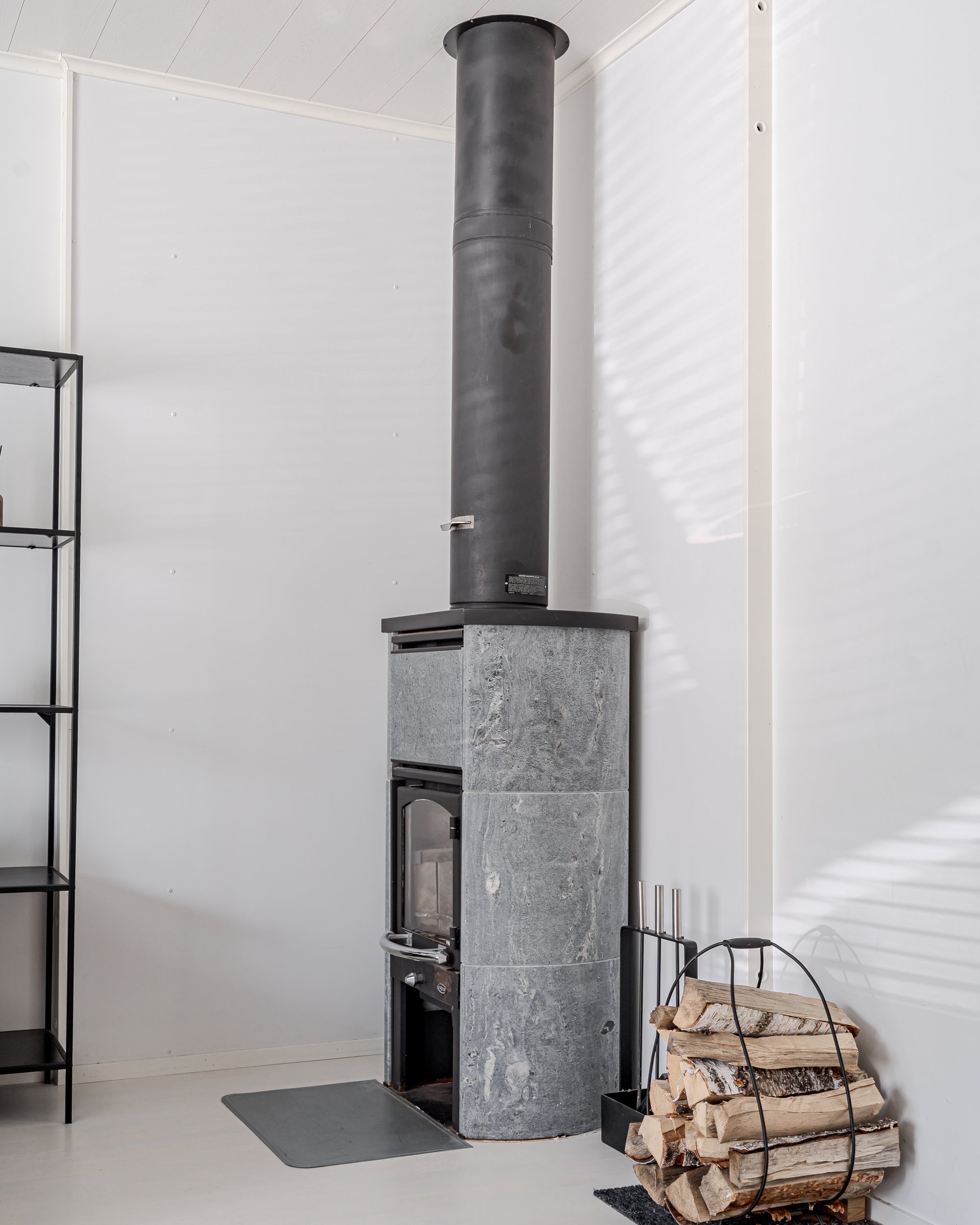 Oma sauna. Lattia: laatta. Seinät: puu. Kiukaan tyyppi: sähkökiuas.